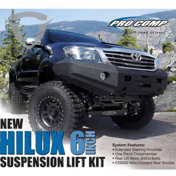 Pro Comp Suspension - Pro Comp 6 Inch Hilux Lift Kit with ES9000 IT DE ELEVACION SUSPENSION TOYOTA HILUX Lift Kit de suspensión Pro Comp 6 "(15,5cm) hacer Toyoty Hilux 07-15 Ascensor frontal: One Piece gota Travesaño Strut Separadores y dirección Knuckles Diferenciales gota Soportes Sway Bar gota TRASERO RS9000 Nitro Shocks Bloques de elevación traseros y U Tornillos Permite 35 por 12.5
